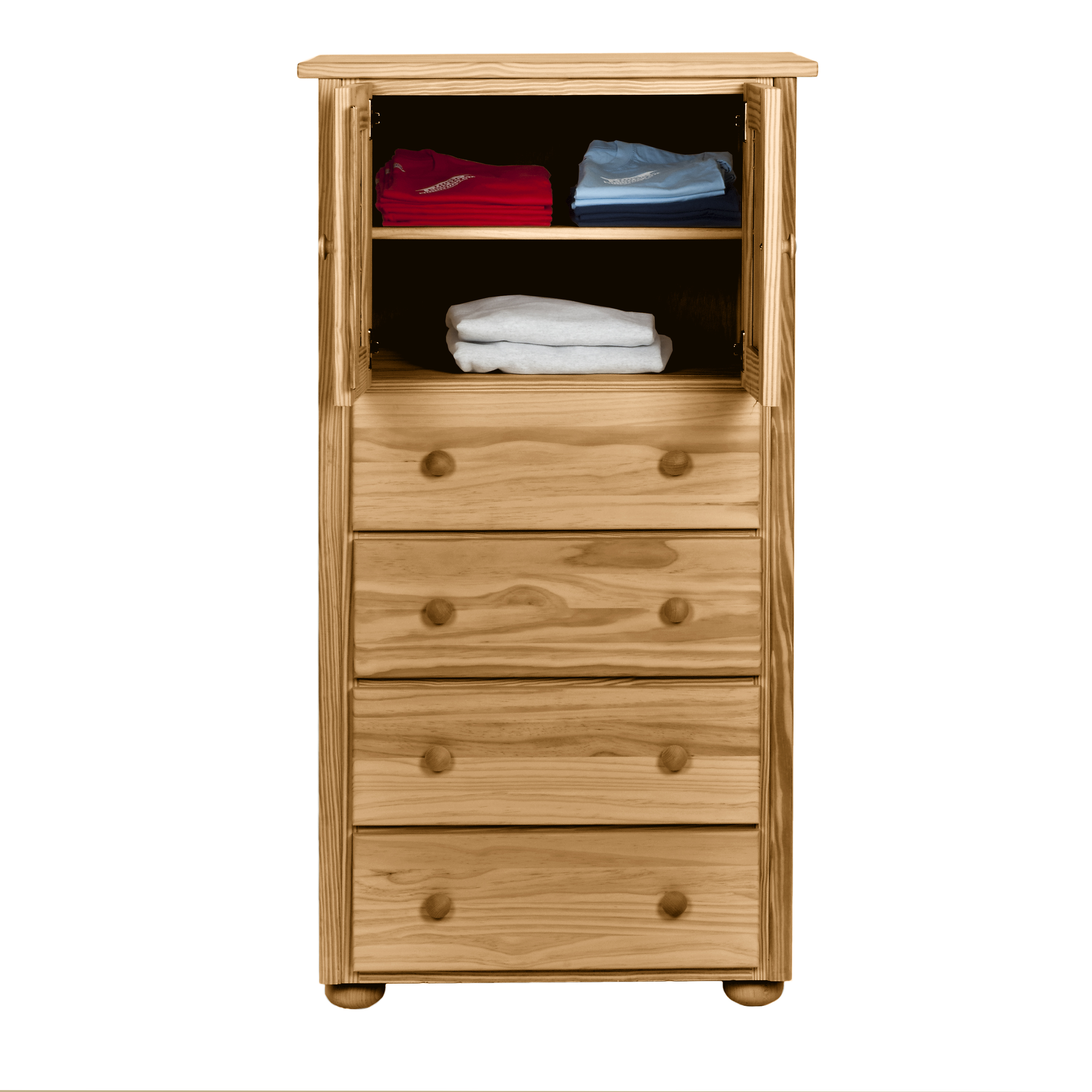Never worry about "having too much baggage" again with the Coastal Collection Door Chest. Fiercely independent with a touch of frill. Graceful, generous storage space for clothing. Best of all, the drawers roll open easily and often during those moments of indecision about what to wear. Easily tucked away into a corner or small space.